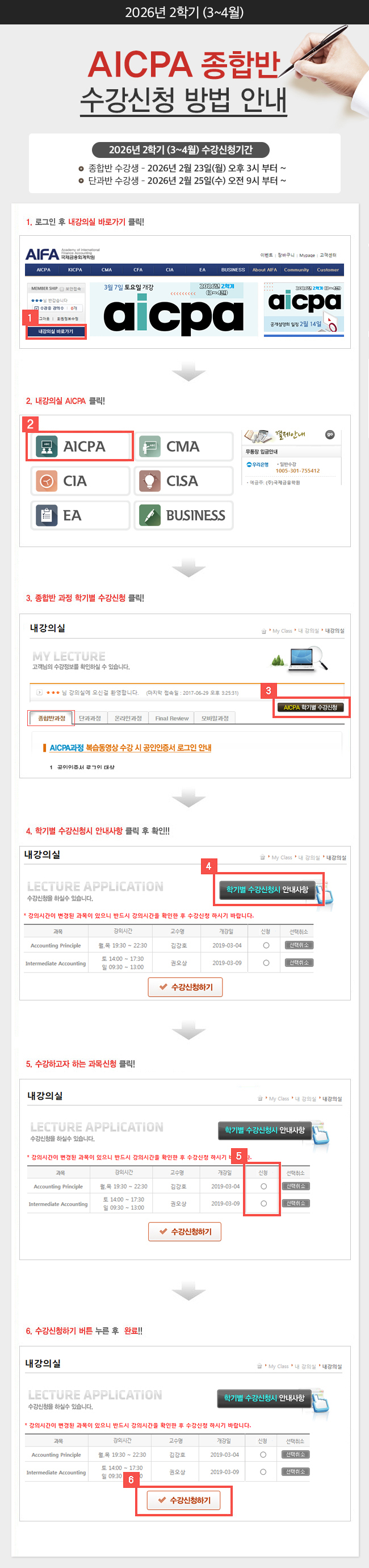 [AICPA] 2026년 2학기(3~4월) AICPA 오프라인 정규과정 수강신청 방법 안내(종합반 수강생)!!!