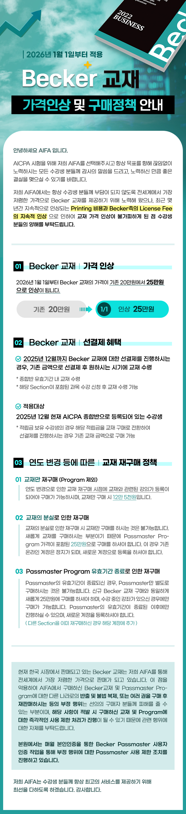 2026년 Becker 교재 가격 인상 및 구매정책 안내!!!